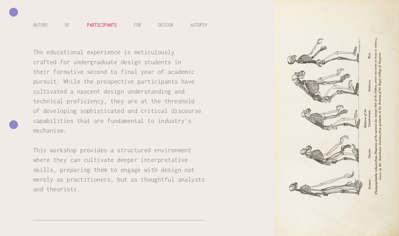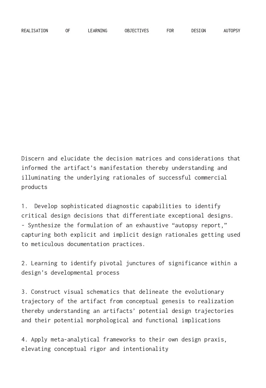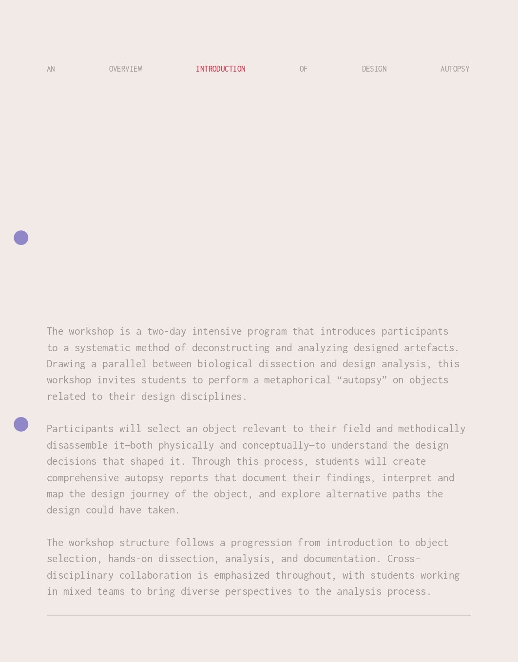 The workshop achieves this through drawing a parallel between biological dissection and design analysis. It invites students to perform a metaphorical “autopsy” on artefacts related to their design disciplines. The aim is to breakdown and complete a rigorous analysis of the selected artefact to get a comprehensive insight just like one would achieve in a real life autopsy.